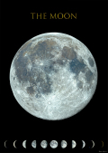 立体感溢れる満月の写真に月の満ち欠けを配し、特殊蓄光インクの夜光効果により夜に電灯を消すと月の輝きが浮かび上がります。お部屋のインテリアとして、またプレゼントに最適です。