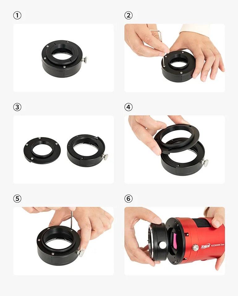 ●接続規格がM42のフィルタードロワーM42II/NEWフィルタードロワー付マウントアダプターを、接続規格がM54の冷却CMOSカメラ(ASI2600MC DUO/2600MM DUO/2600 AIR/2400MC/6200MC/6200MM)に対応させるための変換アダプターです。カメラをアップグレードした際に、ご所有のM42接続のフィルタードロワー本体を無駄にしません。(新たにM54フィルタードロワーIIをお求めいただくよりも低コストで対応が可能になります。)