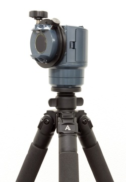 三脚は軽量なアルミ製 4段タイプで、エレベーション機能も装備しています。