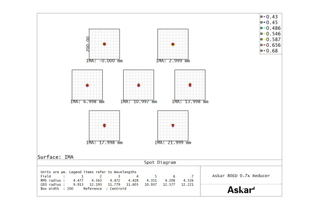 ・Askar 80ED専用に設計された、APS-C対応のフラットナーレンズです。焦点距離を0.7倍に短縮し、像面湾曲を補正することでイメージサークルの端までシャープにピントの合った像を得ることが可能です。