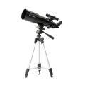 口径80mm、焦点距離400mmの屈折式望遠鏡です。屈折式は、シンプルでメンテナンスが容易な上、コントラストの高いシャープな像を結びます。地上風景やバードウォッチングだけでなく、月面のクレーターや主な惑星の模様、明るい星団・星雲など、多くの天体を観測するのに十分な性能を持っています。