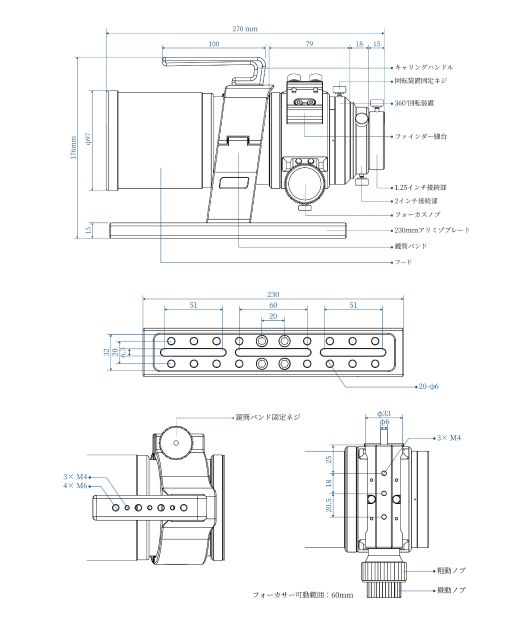 ・「NAKOH 60GT」は、有効口径60mm・焦点距離360mm(口径比F6)の3枚玉アポクロマ
