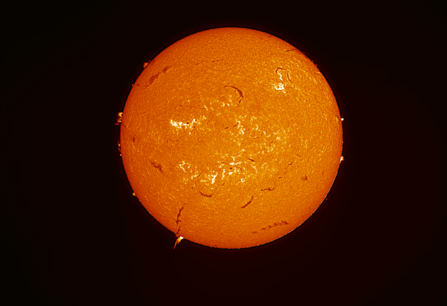 ・太陽のHα線を抽出し、半値幅0.5Å未満の狭帯域で透過するエタロンフィルターと、ソーラーダイアゴナルに装備された20mm径ブロッキングフィルターにより、プロミネンスなどの太陽表面のダイナミックな様子を安全に観測することができます。