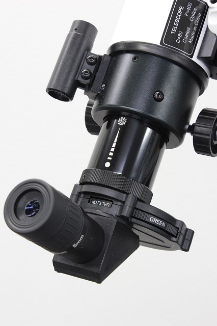 ・接眼部にはNDフィルター(減光フィルター)の他に5色(緑、橙、赤、黄、青)のカラーフィルタ