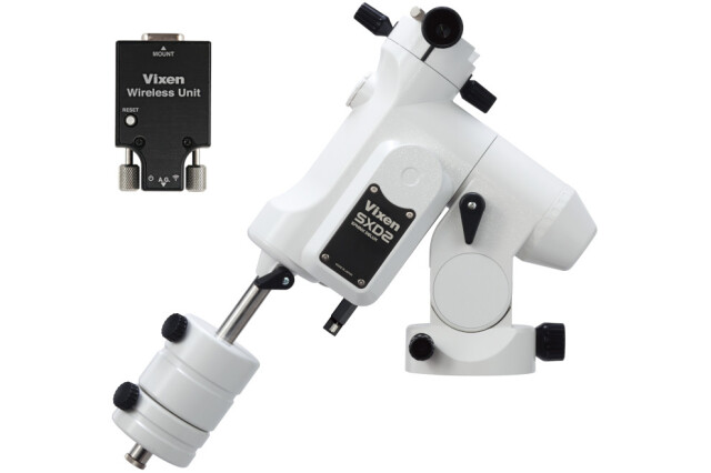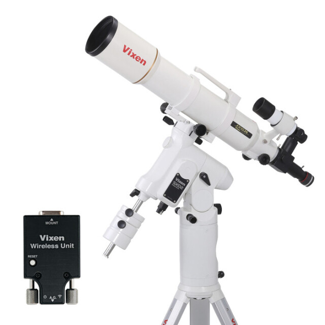 赤道儀としての性能向上のため、素材の見直し、各所へのベアリングの採用、そして各パーツの切削から加工まで全工程にこだわったハイスペック赤道儀です。お持ちのスマートフォンやタブレット端末がコントローラーとなり、高精度な天体自動追尾など天体ナビゲーション機能を活用できる、「ワイヤレスユニット」を搭載しています。